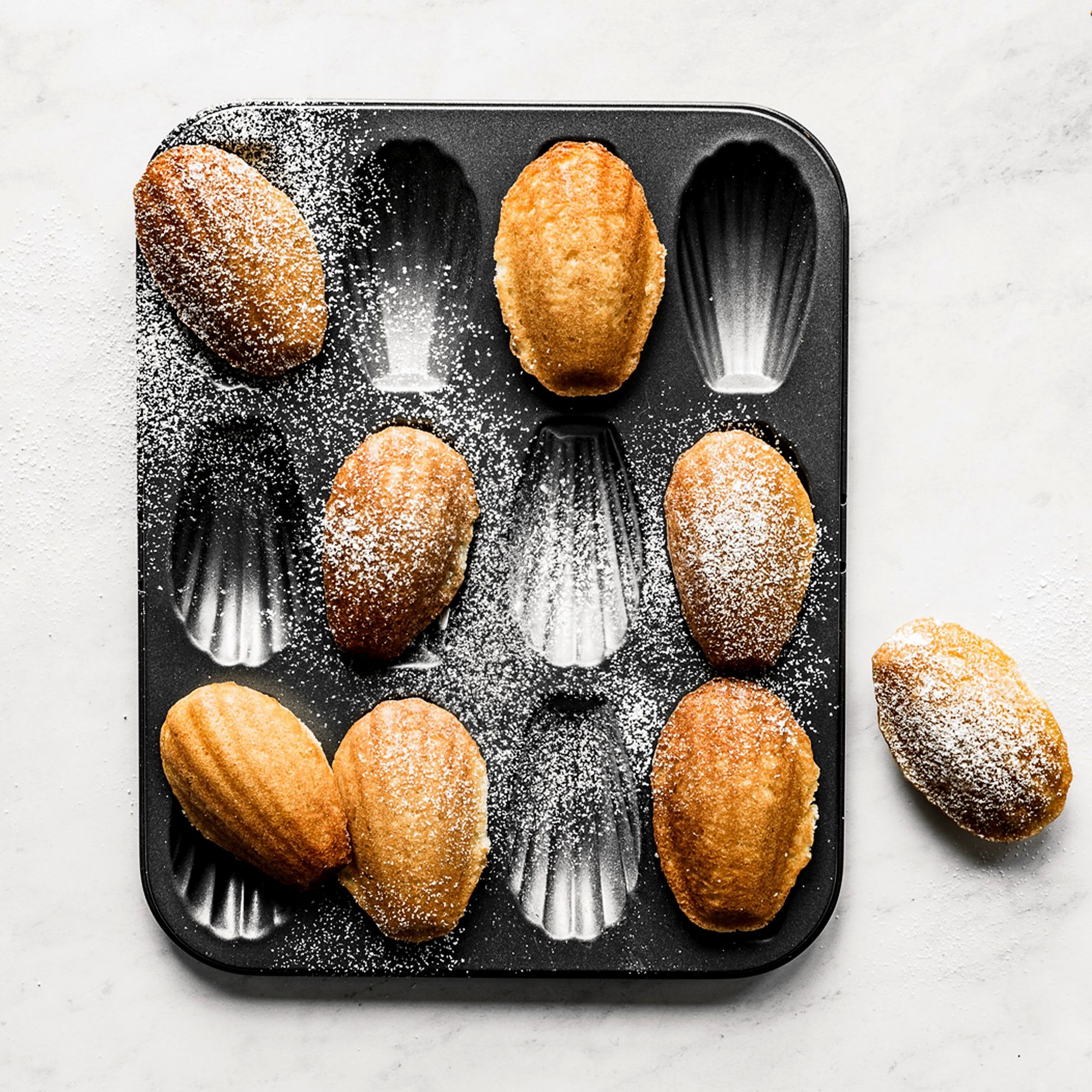 de Buyer - Tray 12 Madeleines - non-stick - Thick-steel heavy tray of 8 moulds for baking individual pastries.